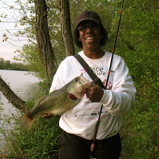 On this night we were fishing at a local park and right before sunset Maria had caught a nice bass measuring 18.5 inches.